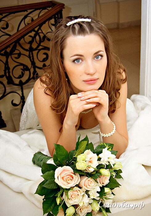Для создания прекрасного и свежего, как сама весна, образа лучше всего подходит свадебная причёска с распущенными волосами. Представленная укладка выполнена на длинных локонах, но подходят для волос любого уровня. Чёлка элегантно убрана со лба назад и зафиксирована сверкающей заколкой. Модель подчёркивает красоту глаз невесты.