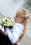 Сногсшибательный образ прекрасной богини трудно представить без копны мягких локонов. Представленная свадебная причёска поставит Вас в один ряд с самыми красивыми обитательницами Олимпа. Волосы убраны назад и зафиксированы на затылке. Всю голову украшает затейливое переплетение кудряшек. Укладка дополнена живыми цветами.