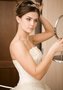 Свадебная причёска с собранными волосами и сверкающей диадемой акцентирует внимание на лице и шее невесты. Пряди зачёсываются назад и фиксируются на затылке. Эта объёмная модель выполняется на длинных и средних волосах. Такой романтичный образ можно дополнить роскошным платьем с открытой зоной декольте.