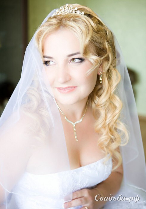 Свадебная причёска с фатой и сверкающей диадемой позволит вам почувствовать себя настоящей принцессой. Волосы слегка зафиксированы на затылке. Роскошные локоны струятся на плечи и спину. Несколько прядей обрамляют личико невесты. Представленная модель выполнена с использованием накладных прядей из натуральных волос.