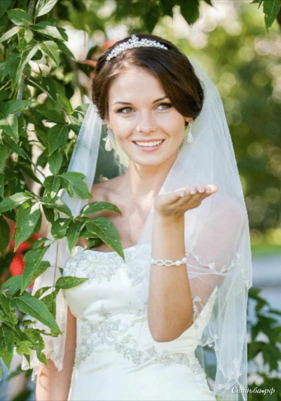Прическа на свадьбу Собранная с объемным пучком,диадема (С18726)