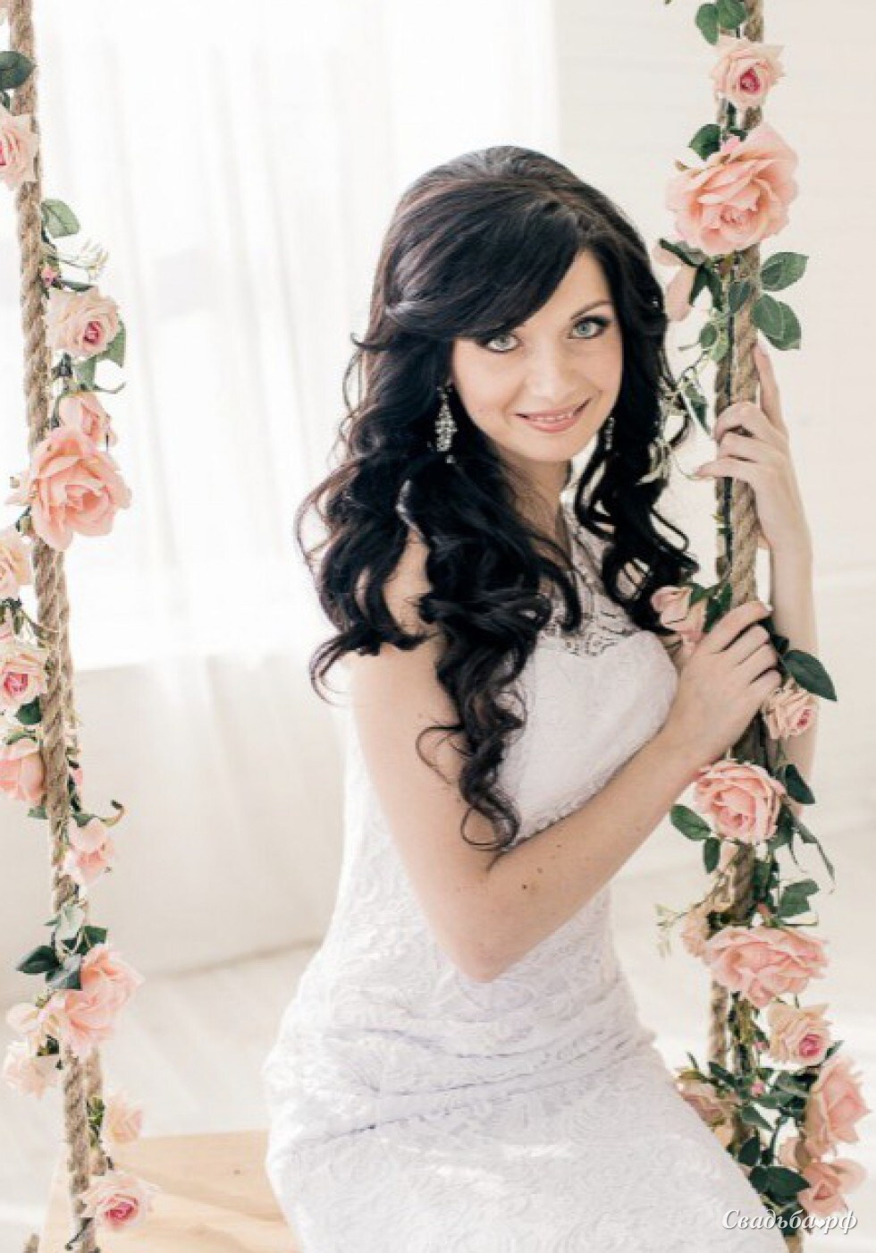 Свадебный образ "Локоны принцессы": прическа выполнена с добавлением прядей из натуральных волос; макияж с эффектом "кошачьего взгляда", для эффекта добавили пучки ресниц на внешние уголки века.