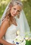 Свадебная причёска с лёгкой фатой и сверкающей диадемой поможет создать романтичный образ невесты. Широкая прядь обрамляет лоб. Волосы зачёсаны назад и зафиксированы на затылке. Изящные локоны струятся на плечи и спину. Такая нежная укладка в греческом стиле эффектно смотрится на длинных и средних волосах.