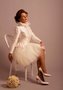 Классическая свадебная прическа с начесом и собранными в объемный заниженный пучок волосами. Это строгая и элегантная прическа, которая не требует какого либо декора и лишь локон у лба вносит правильный резонанс. Такая прическа понравится властным натурам, которые предпочитают строгие наряды даже в день свадьбы. В качестве украшений серьги с жемчугом идеальный вариант.