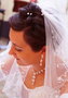 В этой свадебной прическе спереди волосы уложены в пробор, сзади аккуратный французский пучок. Украсить волосы можно мелкими декоративными или живыми цветами, шпильками со стразами или жемчугом. Безусловно, фата будет идеально сочетаться с такой укладкой. Удлиненные серьги и аккуратное колье - отличное дополнение образа невесты.