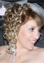 Кокетливая свадебная причёска с распущенными волосами и оригинальной шляпкой понравится самым креативным и жизнерадостным натурам. Волосы завиты в целую копну игривых кудряшек. Чёлка зачёсана набок. Причёска дополнена тонкими лентами, хаотично переплетёнными с кудрями. Модель может быть выполнена на волосах любой длины.