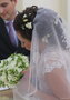 Эффектная свадебная причёска с фатой и живыми цветами поможет создать романтичный и по-весеннему свежий образ прекрасной невесты. Волосы зачёсаны назад и уложены в объёмную конструкцию, состоящую из завитых прядей. Кудри закрывают шею и кокетливо падают на верхнюю часть спины. Подойдёт овальному типу лица.