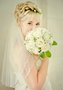 Свадебная причёска с собранными волосами и нежной фатой будет отлично смотреться с любым нарядом. Лёгкая чёлка особенно гармонично сочетается со множеством локонов, изящно уложенных на голове. Такая объёмная укладка зрительно добавит невесте немного роста. Модель может быть декорирована живыми цветами, диадемой или бусинами.