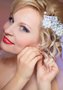 Классическая свадебная прическа с собранными назад волосами. Аккуратная копна, выпадающие локоны, уложенная набок челка - все это является важными деталями данной прически. Яркий макияж, заколка с жемчугом в волосы, короткая прозрачная фата и аккуратные серьги великолепно дополнят образ. Свадебное платье как с открытыми плечами и глубоким декольте, так и достаточно закрытое удачно будет сочетаться с прической.