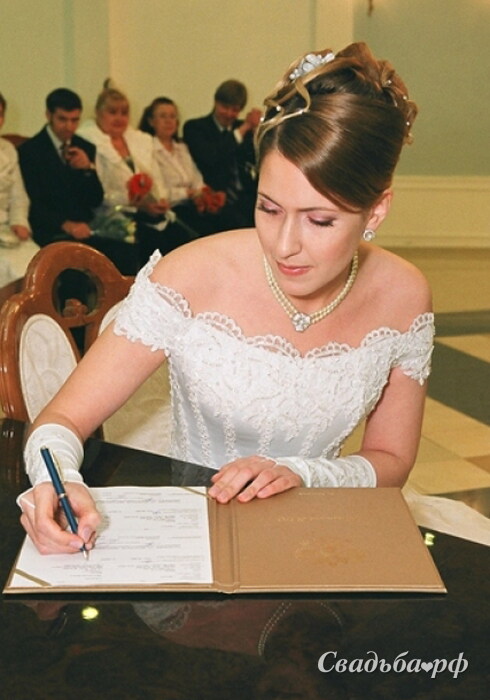 Гладкая причёска с собранными волосами и открытым лбом подойдёт для вытянутых лиц. Широкая прядь спереди постепенно огибает голову и переходит на затылке в завитые локоны. Представленная модель позволит невесте продемонстрировать свою шею и плечи. Такое творение можно дополнить цветами и бусинами. Отлично сочетается с облегающим нарядом.