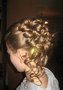 Свадебная причёска с собранными волосами выполняется на средних и длинных прядях. Объём пучку на затылке придают многочисленные кудри, прочно зафиксированные и украшенные яркими заколками или бусинами. Изящные локоны струятся по спине. Такая укладка может быть дополнена сверкающей диадемой. Пышное платье придаст особый шик вашему образу.