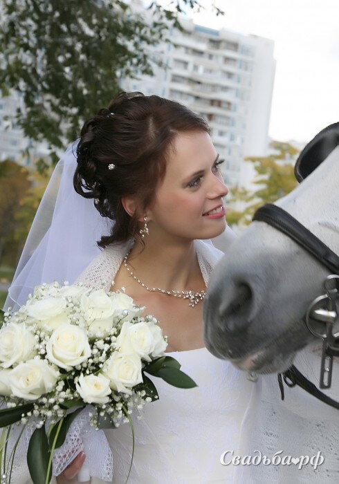 Свадебная причёска с фатой и открытым лбом смотрится очень нежно. Волосы зачёсываются назад и слегка фиксируются на затылке. Изящные кудри придают укладке объём. Отличный вариант для коротких и средних волос. Такая причёска великолепно сочетается с любым типом лица. Модель можно дополнить миниатюрными заколками или бусинами.
