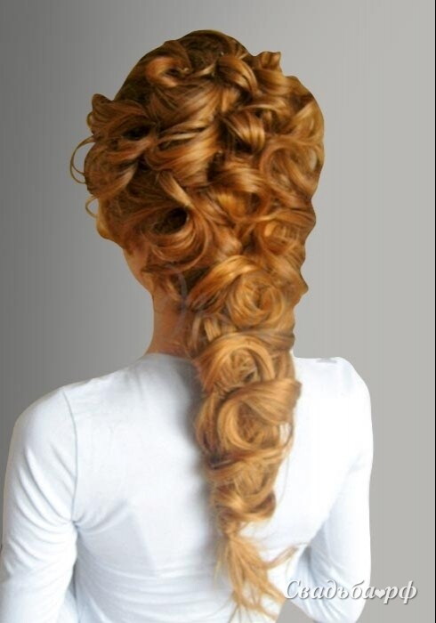 Свадебная причёска в греческом стиле придётся по душе обладательницам длинных и густых волос. Эта оригинальная укладка отличается безупречными формами и мастерским исполнением. Широкие кудри собраны на затылке и изящно переплетены между собой. Композиция постепенно спускается по спине. Модель можно дополнить живыми цветами.