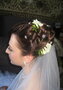 Свадебная причёска с живыми цветами и нежной фатой поможет создать романтичный образ невесты. Такая модель с открытым лбом и забранными на затылок прядями больше всего подойдёт чуть вытянутому или худенькому личику. Переплетённые между собой локоны придают укладке объём. Отличный вариант для длинных или средних волос.