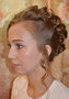 Свадебная причёска с собранными волосами открывает лоб и шею невесты. Свободные локоны по бокам придают модели романтичность. Волосы зачёсаны назад и зафиксированы на затылке. Изящные локоны собраны в объёмную шишку. Такая причёска выполняется на средних и длинных волосах. Укладку можно дополнить свежими цветами, бусинами, заколками или фатой.