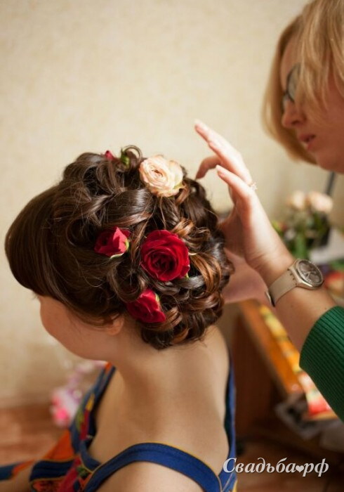 Классическая свадебная прическа представляет собой собранные сзади волосы. Прическа будет идеально смотреться на длинных и средней длины волосах. Удачно дополнят свадебный образ живые цветы, а фата придаст легкости и воздушности. Невесты, которые носят, челку обязательно обратят свое внимание на эту прическу. Она будет замечательно гармонировать с пышным свадебным платьем.