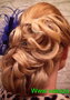 Свадебная прическа в консервативном стиле. Спереди волосы аккуратно уложены на пробор, а сзади собраны в невысокий объемный пучок. Такая прическа - отличное дополнение к свадебному наряду в винтажном стиле. А если дополнить прическу шпильками с мелкими стразами или декоративной заколкой-цветком, то она великолепно подойдет к пышному свадебному платью с закрытыми плечами и открытой спиной.