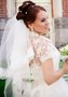 Классическая свадебная прическа, где основным элементом являются букли. Пряди зачёсываются назад и фиксируются на затылке в объёмную шишку. Представленную укладку можно сделать из волос средней длины и очень длинных. Причёска дополнена фатой и бусинами. Модель приковывает внимание к лицу невесты и зрительно удлиняет шею.