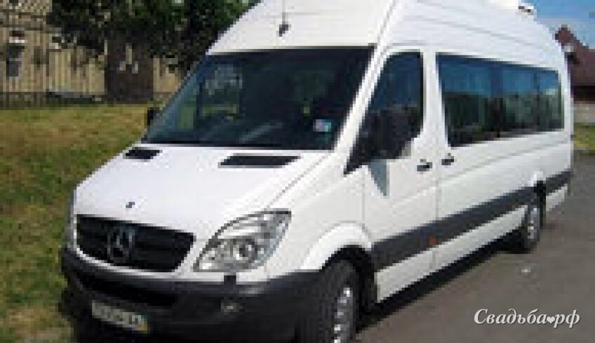 Белоснежный микроавтобус Mercedes-Benz Sprinter просто незаменим для перевозки большого количества приглашённых. Этот комфортабельный автомобиль рассчитан на 20 пассажиров. Салон оборудован всем необходимым для незабываемой дороги. А демократичная цена такого транспорта не оставит равнодушными даже самых практичных молодожёнов!
