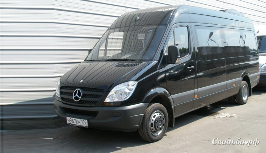 В этом микроавтобусе марки Мерседес Бенц, модель Sprinter Super рассчитанным на 20 посадочных мест, предусмотрены эргономические сиденья с удобными подголовниками, кондиционер с индивидуальным обдувом. Прекрасный обзор обеспечивают огромные панорамные окна. TV , CD , DVD, индивидуальная подсветка.