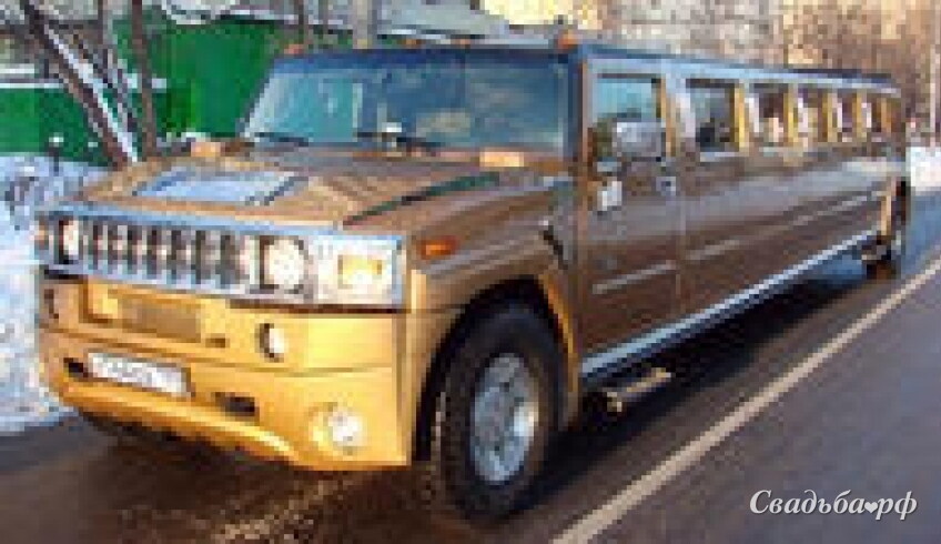 Золотистый Hummer H3 просто создан для Вашего кортежа. Караоке с двумя беспроводными микрофонами, диско-пол, дымовая установка, лазерная пушка, стробоскоп, лучевая светомузыка, 4 шаровые молнии, звёздное небо и неоновая подсветка гарантируют Вам и Вашим гостям настоящую дискотеку на колёсах! Современный климат-контроль и бары также порадуют Вас.