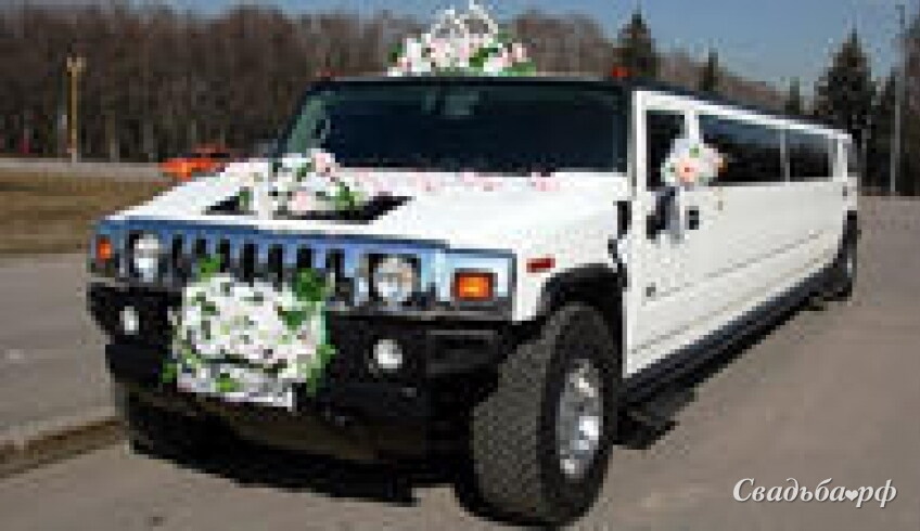 Мощный лимузин Hummer H2 приковывает к себе внимание своим сверкающим белым кузовом, хромированными вставками и тонированными окнами. Комфортабельный салон рассчитан на 20 пассажиров, благодаря чему все Ваши близкие будут рядом в день Вашей свадьбы. Машина оборудована самой современной техникой для незабываемой дороги и зажигательной вечеринки.