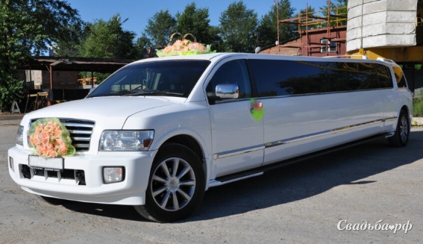 Если хотите, чтобы ваше торжество стало незабываемым, то лимузин Infiniti QX с белоснежным кузовом и панорамными тонированными окнами создан специально для вас. Эта модель с вместительным светлым салоном рассчитана на 24 пассажира и оборудована всем необходимым: современной техникой, подсветкой, баром. При заказе лимузина предусмотрена скидка.