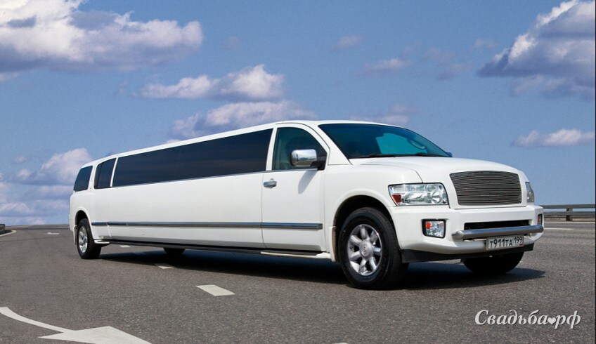 Белоснежный лимузин Infiniti QX отличается элегантными формами, безукоризненной геометрией и высокой надёжностью на дороге. Этот красавец поможет вашему свадебному кортежу выделиться из общего потока машин, а вам - почувствовать себя в центре внимания. Комфортный салон модели рассчитан на 20 пассажиров и оборудован по последнему слову техники.