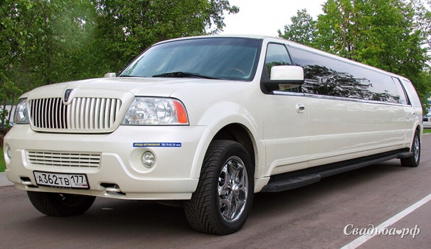 Изящный лимузин Lincoln Navigator с жемчужным кузовом и панорамными окнами вместит всех ваших друзей, ведь он оснащён вместительным салоном на 19 пассажиров. Внутренний интерьер автомобиля соответствует внешнему облику: тёмные кожаные диванчики отлично сочетаются с оригинальной подсветкой, баром и современными DVD и MP3 проигрывателями.