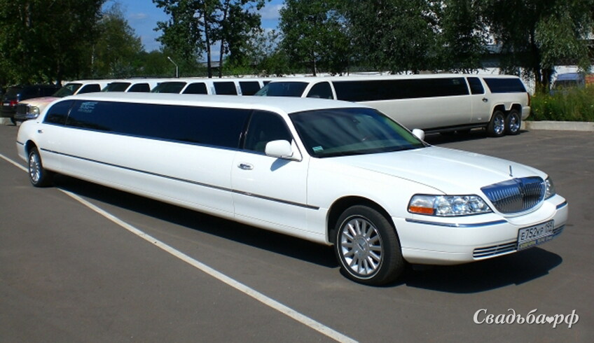 Белоснежный лимузин Lincoln Limousine с панорамными окнами выделит вас в общем потоке машин в день свадьбы. Вместительный салон, отделанный комбинированной кожей контрастных цветов, рассчитан на 12 человек. Бар с отделением для льда, неоновая подсветка, мощная звуковая система, телевизор, DVD и MP3 проигрыватели сделают ваш праздник незабываемым.