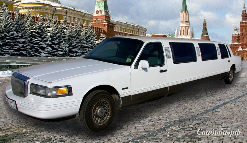 Белоснежный лимузин модели Линкольн Limousine Towncar выполненный в классических традициях лимузиностроения, отлично подойдет для пышной и торжественной свадьбы. Комфортабельный салон рассчитанный на одиннадцать мест отделан дорогой кожей и оснащен самой современной техникой. CD , DVD , КАРАОКЕ , вместительный бар. Поездка на этом Линкольне заполнится вам надолго.