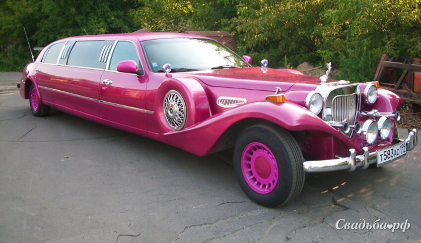Очаровательный лимузин Excalibur Phantom, выполненный в оригинальном ретро стиле, никого не оставит равнодушным. Ярко розовый кузов с хромированными элементами отличается изящными формами и оригинальными изгибами. Представленная модель оборудована комфортным и вместительным салоном, рассчитанным на 7 пассажиров.