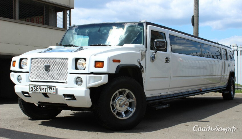 Hummer Н2 - одна из известнейших марок автомобилей, занимающая свое почетное место среди респектабельных автомобилей элитного класса. Огромный, роскошный лимузин снежно-белого цвета не оставит никого равнодушным ! Салон из комбинированной тёмной кожи. Тонировка стекол, MP3 и DVD плееры, плазменный монитор. Кондиционер, интерком для индивидуальной связи с водителем. Зеркальный бар. Машина рассчитана на 24 персоны.