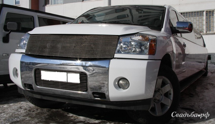 Шикарный лимузин Infiniti QX 56 праздничного снежно-белого цвета. Салон из комбинированной светло-тёмной кожи. Бар с отделкой и меняющей цвет подсветкой. Наполнение бара: фужеры и бокалы для различных видов напитков. Отделение для льда. Аудиосистема с CD. Два 17 телевизора. КАРАОКЕ-система. Диско-пол, диско-потолок.Огромный, роскошный лимузин не оставит никого равнодушным
