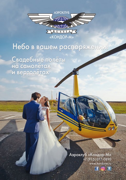 Аэроклуб Кондор-М предлагает совершить незабываемые полеты на вертолете или самолете и получить незабываемые впечатления в день свадьбы!