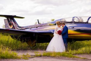 А на фоне авиатехники получатся превосходные и неповторимые свадебные фотографии.