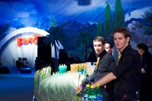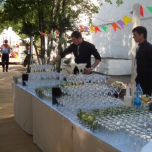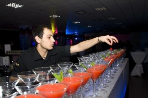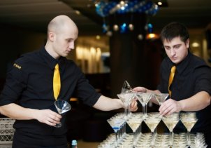 Бармены компании ART BAR декорируют стол фруктами, ягодами или свежими цветами