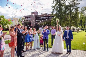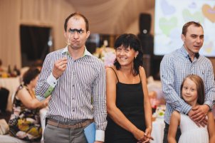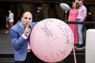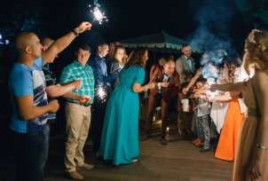 Я работаю в паре со своим постоянным ди-джеем Виталием Батуриным. Диджей на свадьбе выполняет две основные функции — дискотека и интерактивная медиа-поддержка программы. Большинство игр, караоке, видео-фото-слайд-шоу — всё это демонстрирует наш экран, который входит в стоимость вместе со всей аппаратурой, включающей звук, свет, дым и wi-fi. А на тот случай, если вы решили расписаться в полях или в лесу, у нас есть мобильный генератор, который позволит не только устроить там дискотеку, но и зарядить айфон невесты!