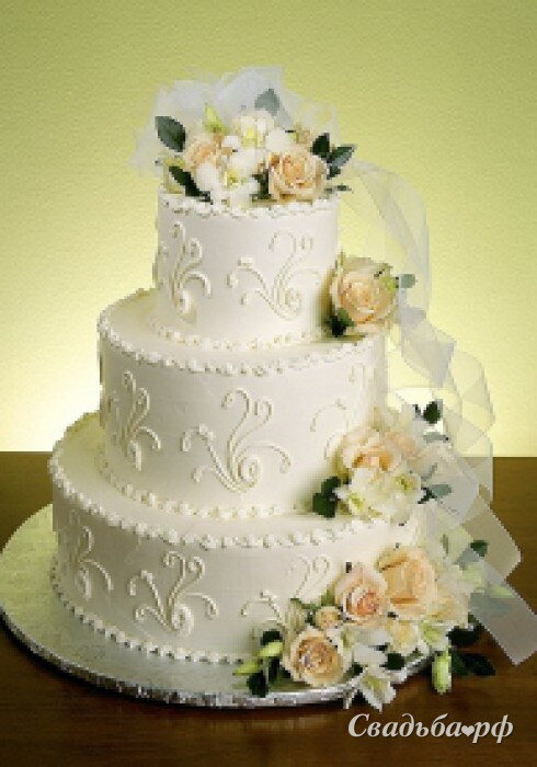 Это лакомство трудно описать словами, настолько оно нежное и удивительно красивое. Ослепительно белые коржи украшают сказочной красоты цветы. Обворожительные формы, необычайная гармония цветов и бесподобный вкус делают этот свадебный торт настоящим чудом. Такие эксклюзивные торты, благодаря своей элегантности и нежности, создают потрясающее настроение праздника и восторга.