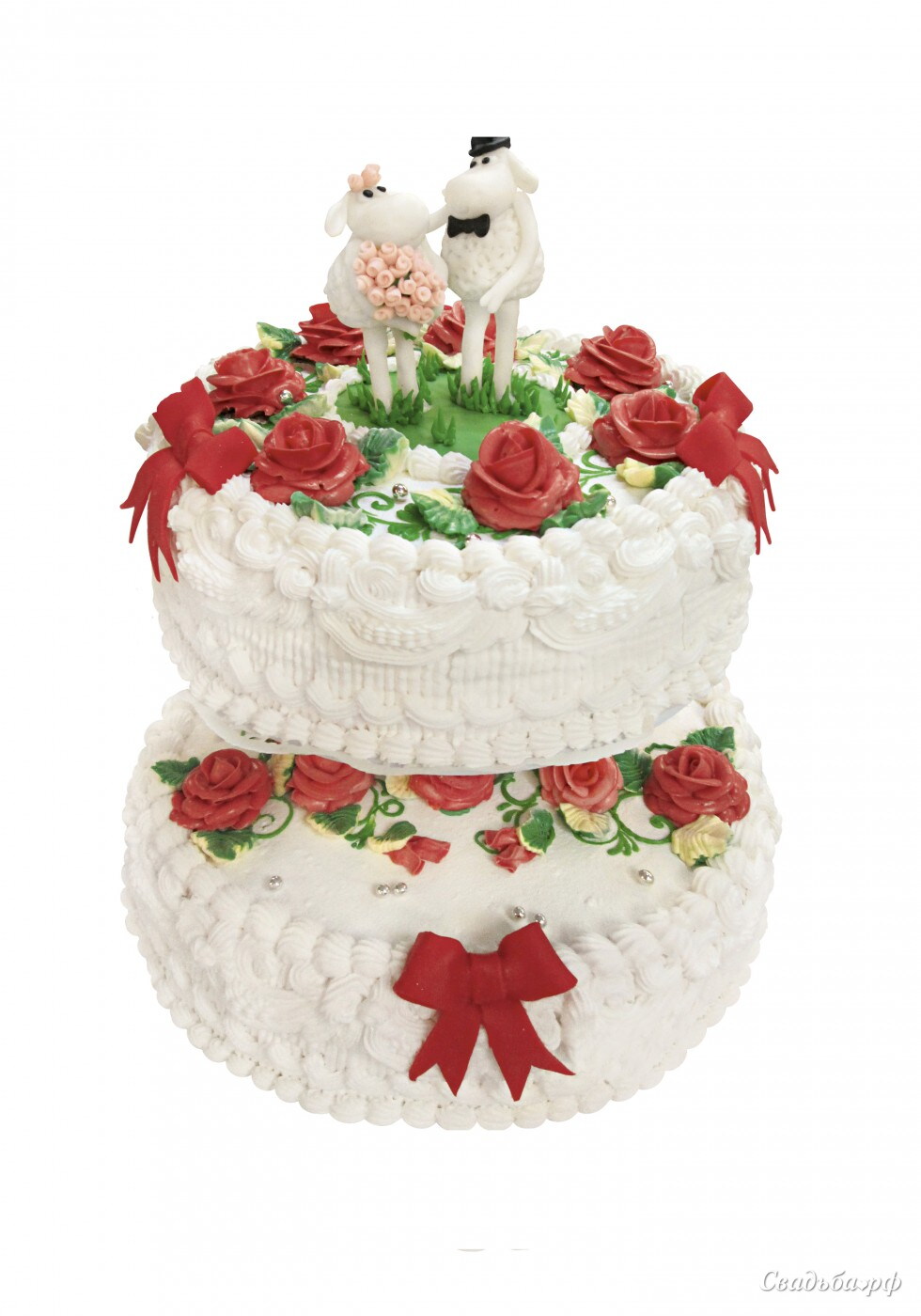 Торт с подставкой каскад. 2-х уровневый. Отделка торта выполнена из крема или взбитых сливок. Торт украшен фигурами из мастики. Количество уровней, цветовая гамма и тематика фигур может быть изменена. Основа на Ваш выбор.