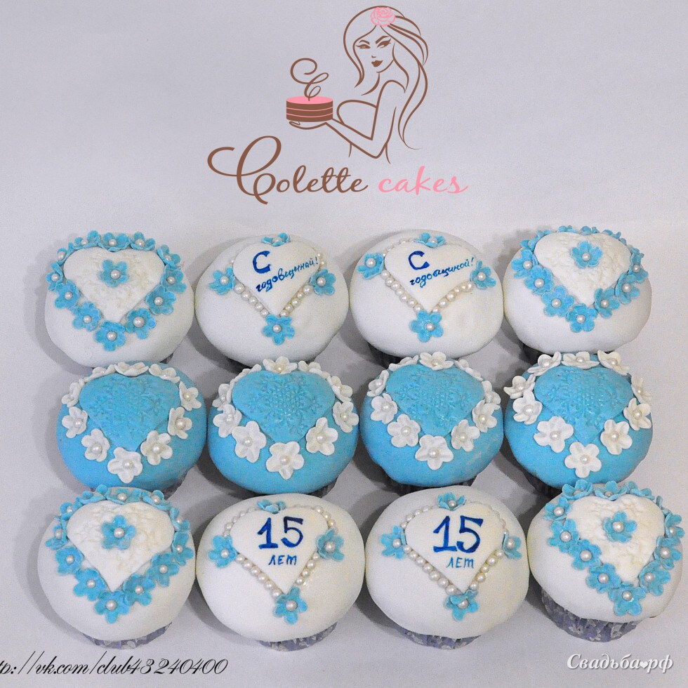 Свадебный торт «Бело-голубые капкейки» (C65266)