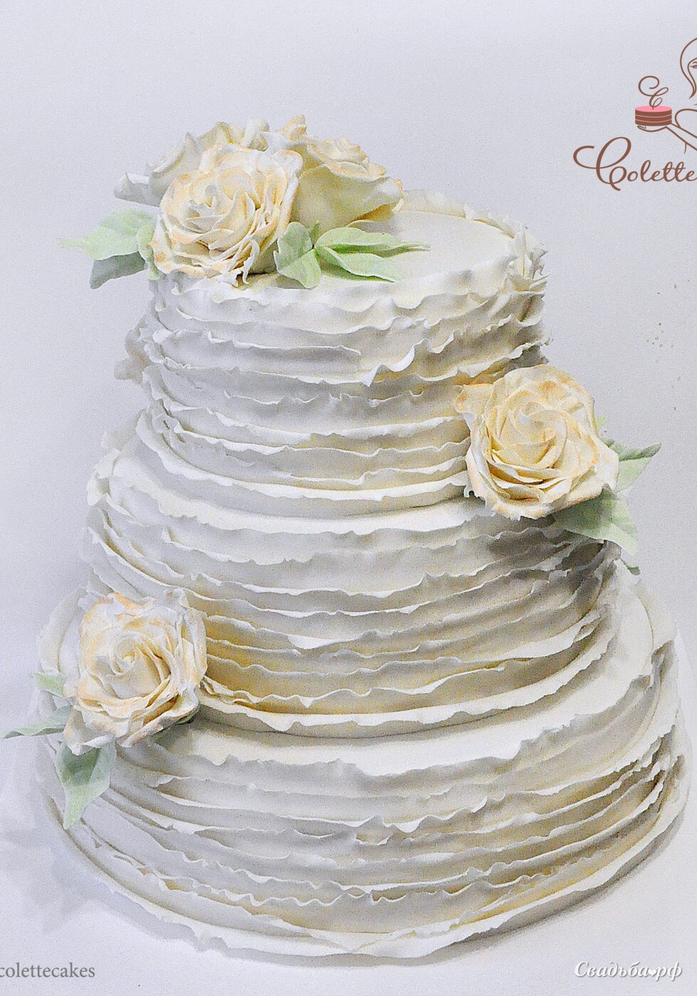 Свадебный торт «Белый с рюшами и розами» (C65276)