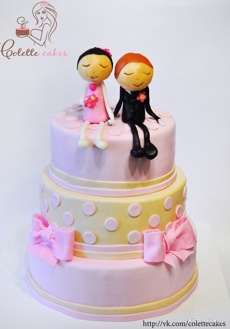 Свадебный торт «Розовый с фигурками» (C65283)