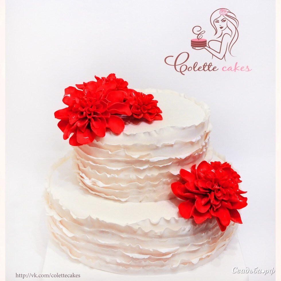 Торт на свадьбу «Рюши с георгинами» (C65285)