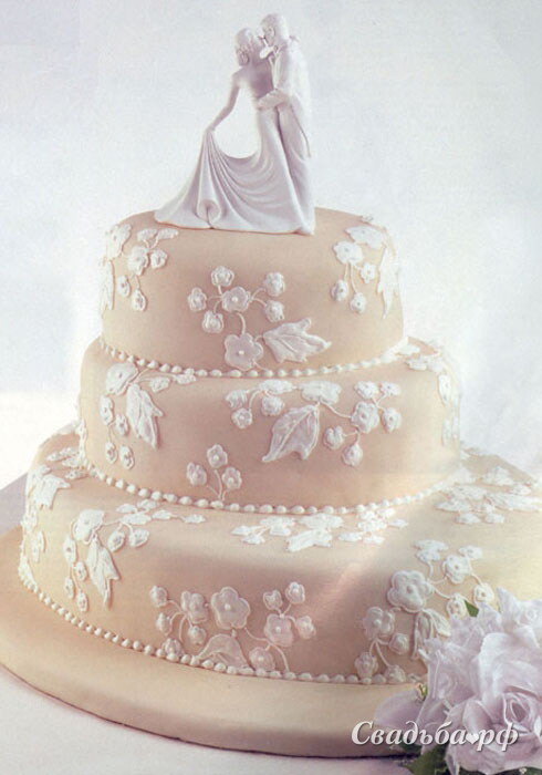 Торт 3-ярусный, 5 кг на подставке. Состав: творожный торт с бисквитной прослойкой, покрытие — марципан.
