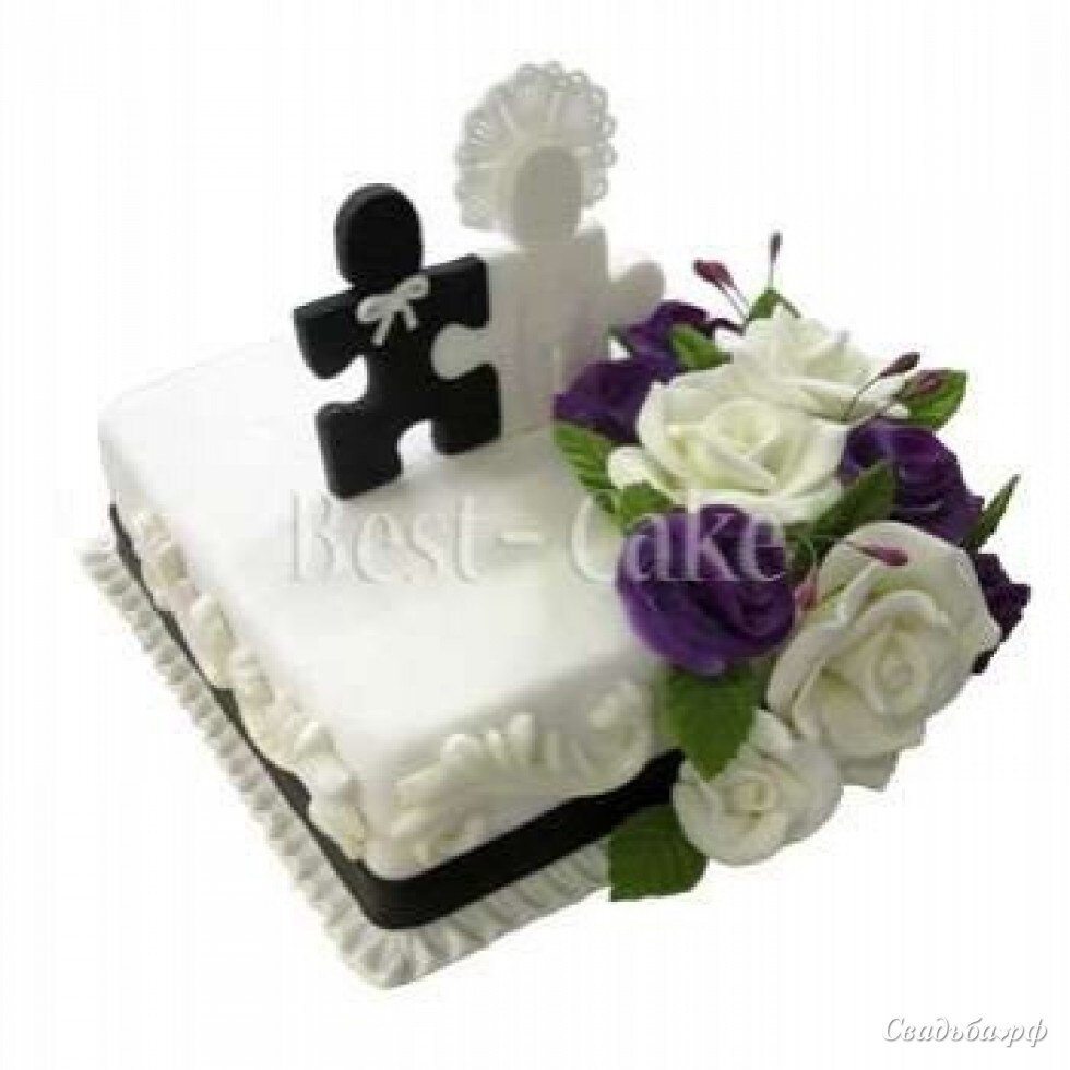 орт «Свадебный пазл» - украшен сладкими цветами с фигурками пазлов в виде жениха и невесты.