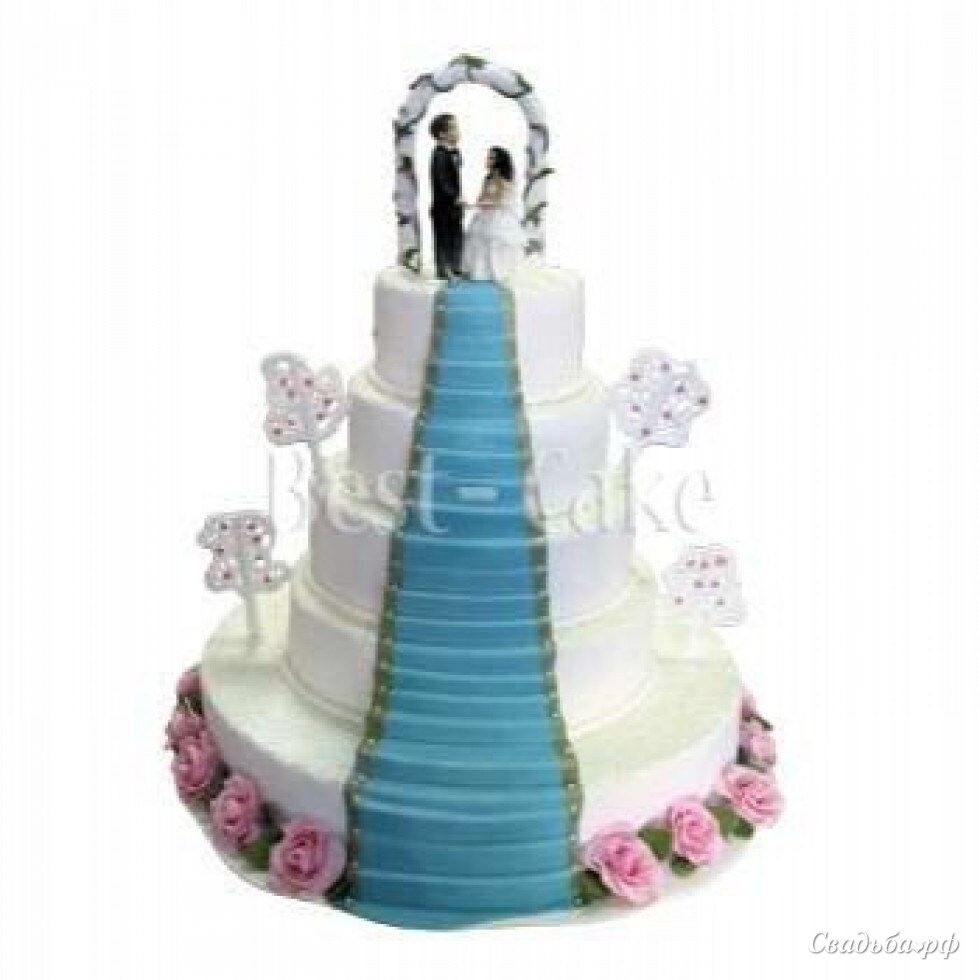 Торт «Вечная любовь» - красивый свадебный торт с бирюзовой дорожкой и свадебной аркой над женихом и невестой.