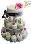 Свадебный торт на ярусной подставке. Верхний ярус - торт (от 2 кг), украшенный сахарными цветами, начинка любая на Ваш выбор. По нижним ярусам расположены пирожные(200 г), оформленные в общем стиле. Цветовая гамма торта может быть другой.
