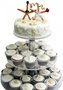 Свадебный торт на ярусной подставке. Верхний ярус - торт (от 2 кг), украшенный шоколадными морскими фигурами, начинка любая на Ваш выбор. По нижним ярусам расположены кап-кейки (150г), оформленные в общем стиле. Цветовая гамма торта может быть другой.