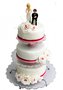 Милый торт на ярусной подставке, украшенный сахарными розами и шоколадной фигуркой жениха и невесты. Количество ярусов и цветовую гамму можно изменить по желанию. Начинка любая на Ваш выбор (от 3 кг).